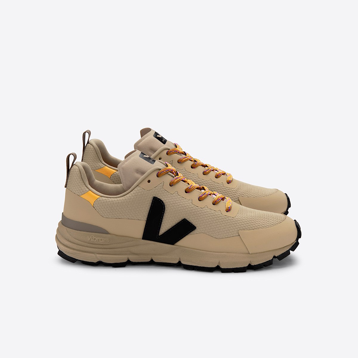 - VEJA and Vibram’s collaboration calls for explorationwith its new outdoor-inspired style.Both teams created the Dekkan, a technical style mixing VEJA’s ecological materials and Vibram’sknow-how.